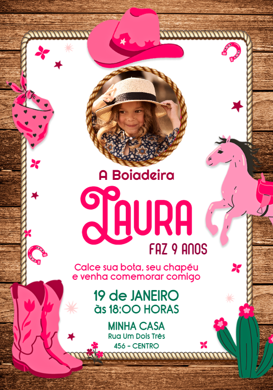 Convite Aniversário Boiadeira com Foto para Editar Online