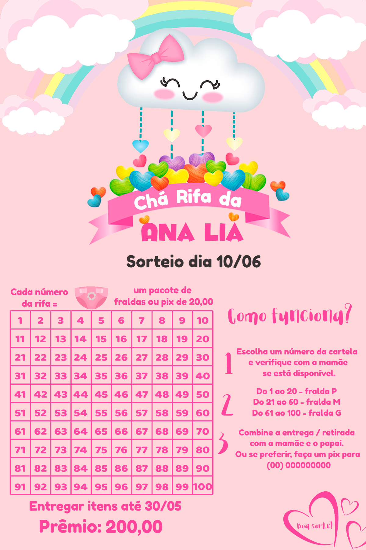 Chá Rifa Chuva de Amor com Nuvem Fofa para Editar Online