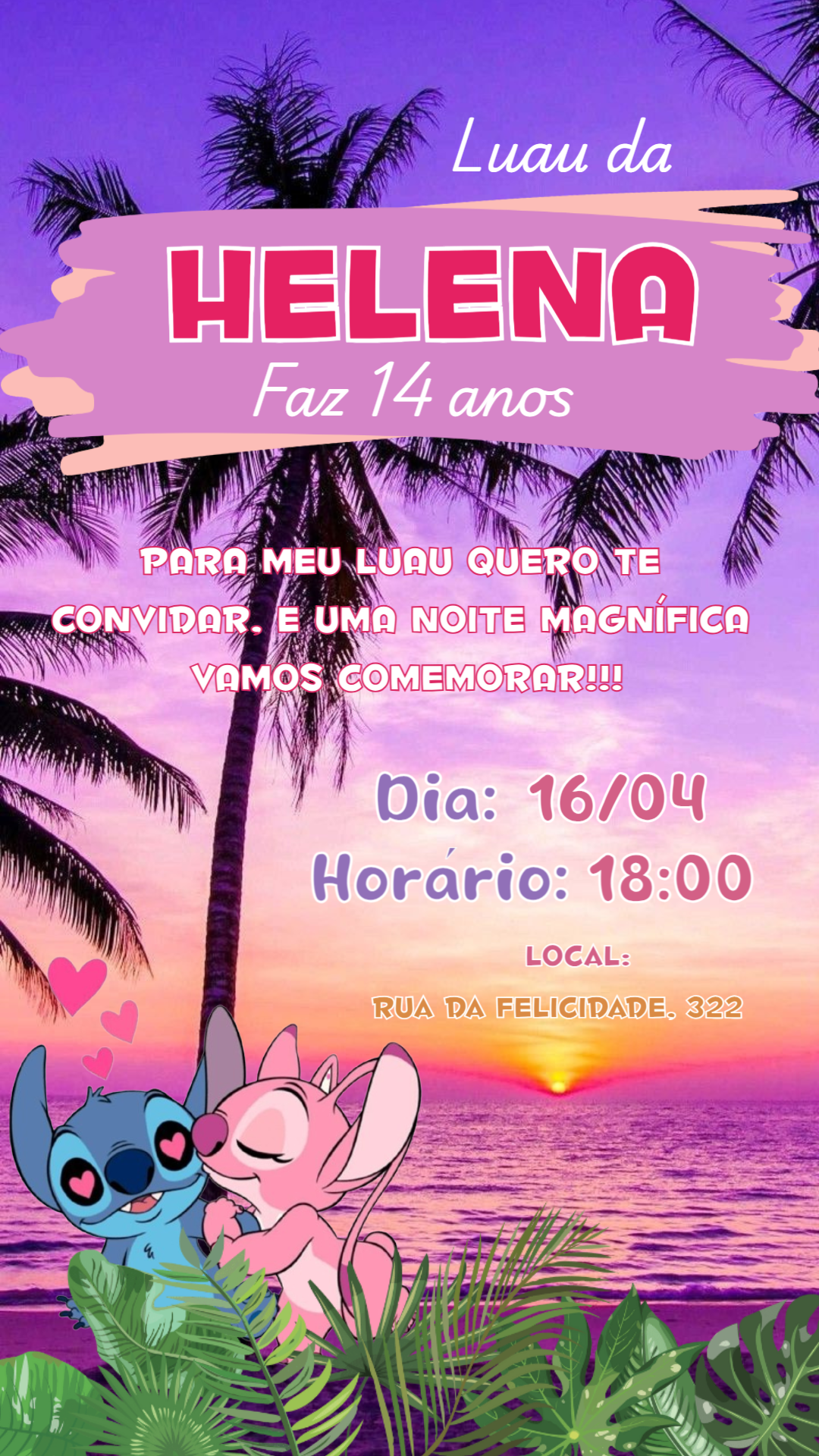Convite de Aniversário Luau Stitch e Angel para Editar Online
