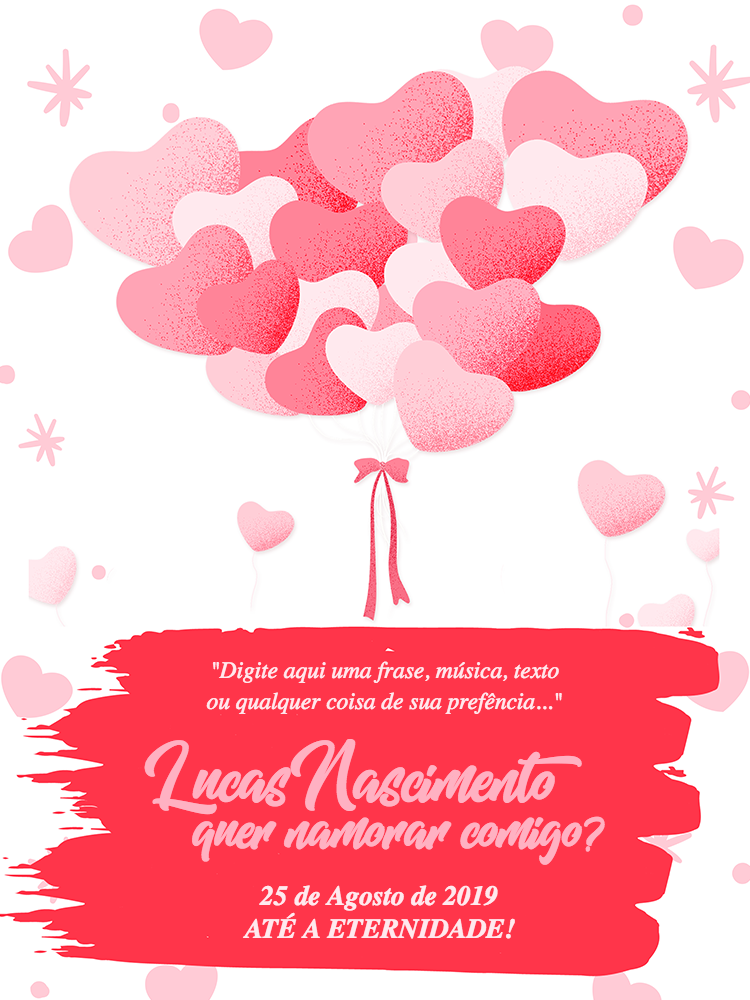 Celebre o amor de uma forma inesquecível com nosso encantador Cartão de Namoro, um template digital que transborda romance e doçura, ideal para transformar um simples "quer namorar comigo?" em um momento verdadeiramente mágico e eterno. Com um design vibrante de corações cor-de-rosa flutuantes e delicados detalhes em vermelho, este convite personalizável é a escolha perfeita para um pedido de namoro surpresa, um aniversário de relacionamento ou qualquer declaração de amor que mereça ser eternizada com originalidade. Imagine a emoção ao receber esta mensagem especial, onde você pode inserir sua própria frase, música ou texto preferido, garantindo que cada detalhe reflita a singularidade do seu relacionamento e o profundo sentimento que os une, promet