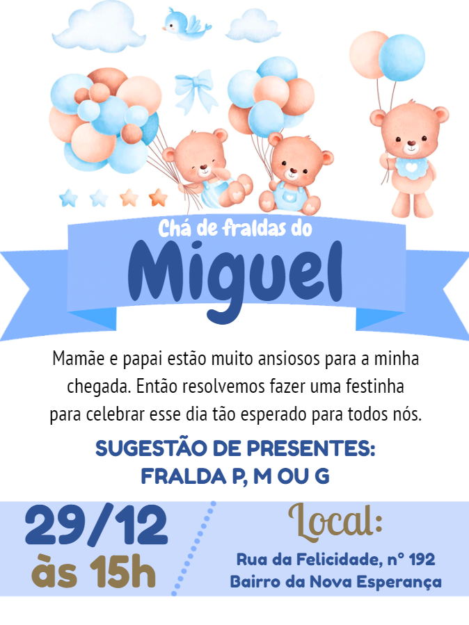 Convite Chá de Fraldas Ursinho Baloeiro para Editar Online