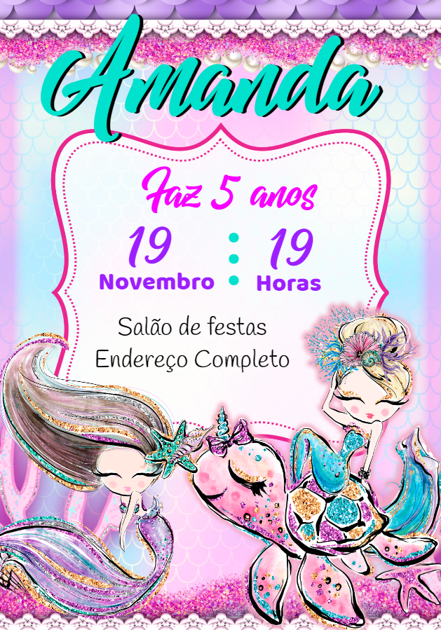 Crie um convite mágico do fundo do mar! Personalize online com os dados da sua festa e envie para seus convidados pelas redes sociais.