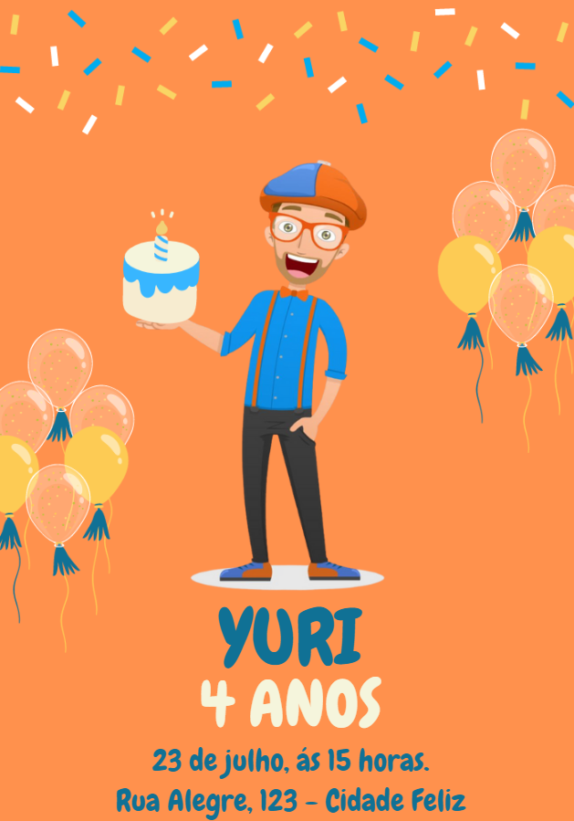 Prepare uma festa inesquecível com o tema mais divertido! Este convite de aniversário do Bippli, com seu design vibrante em laranja e azul, é a escolha perfeita para celebrar. Personalize online de forma rápida e fácil: insira o nome do aniversariante, a idade, e todas as informações da festa, como data, horário e local. Após a edição, o download é imediato e em alta resolução. Compartilhe digitalmente com seus amigos e familiares ou imprima para uma entrega especial. Crie um convite único em poucos cliques