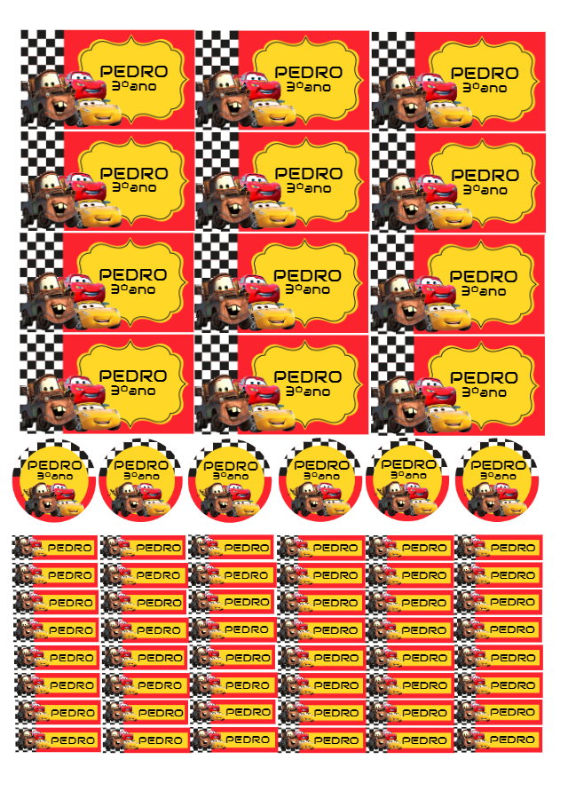 Organize o material escolar com pura velocidade e diversão! Este kit de etiquetas escolares do tema Carros é perfeito para a volta às aulas. Com um design vibrante em vermelho, amarelo e detalhes de pista de corrida, ele traz os personagens mais queridos para identificar cadernos, livros e lápis. Personalize online em poucos cliques! Adicione facilmente o nome do aluno, a série e a matéria nos diversos formatos de etiquetas disponíveis. O processo é rápido, fácil e totalmente online. Após editar, o download é instantâneo! Imprima em casa ou em uma gráfica e deixe todo o material escolar com um toque de aventura e organização. Ideal para começar o ano letivo com o pé no acelerador