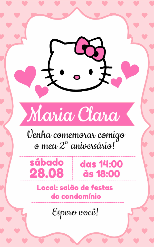 Convite de Aniversário Hello Kitty para Editar Online