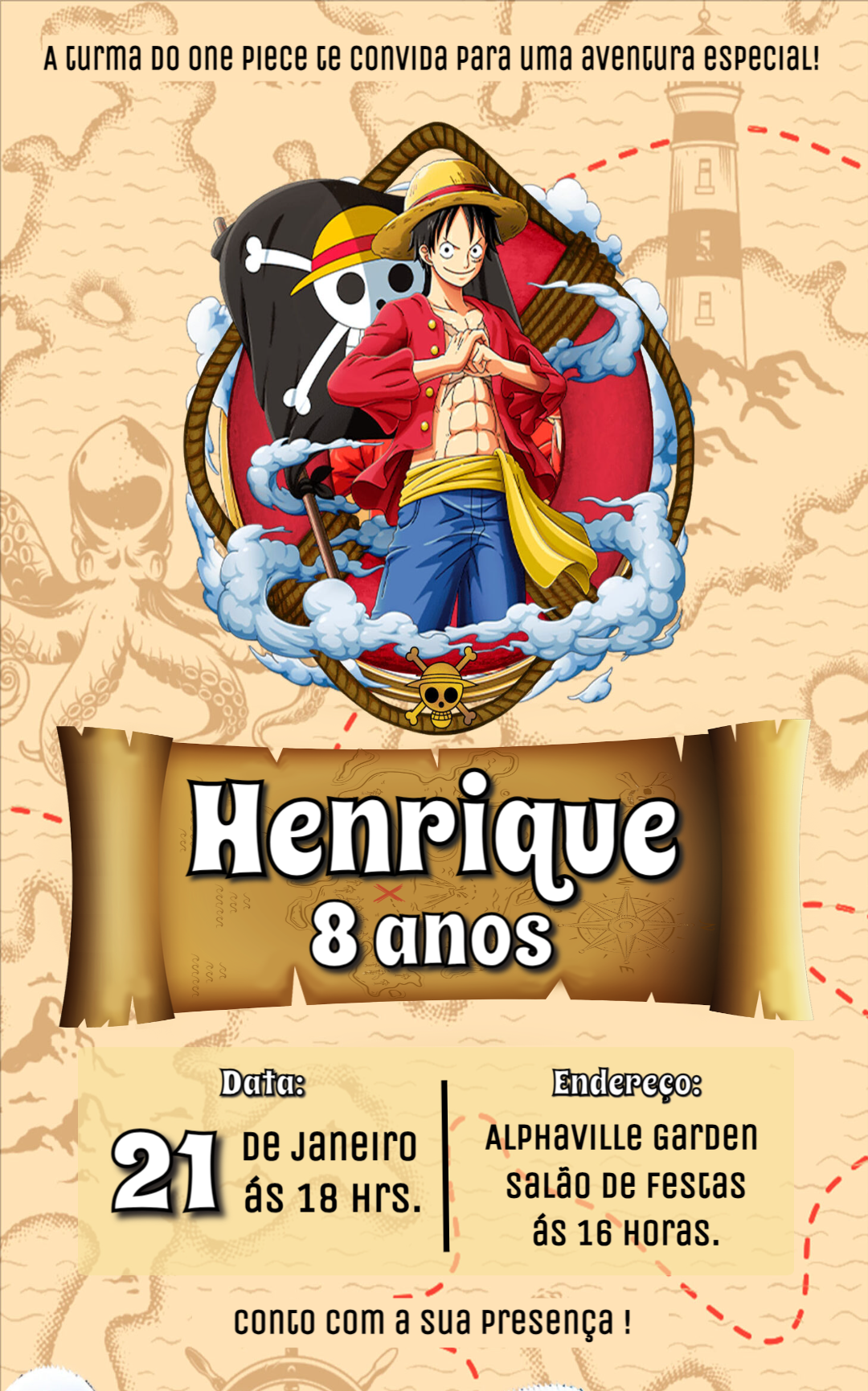 Convite de Aniversário One Piece para Editar Online