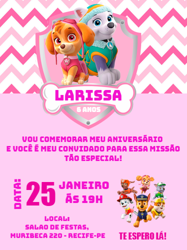 Convite Aniversário Patrulha Canina Menina para Editar Online