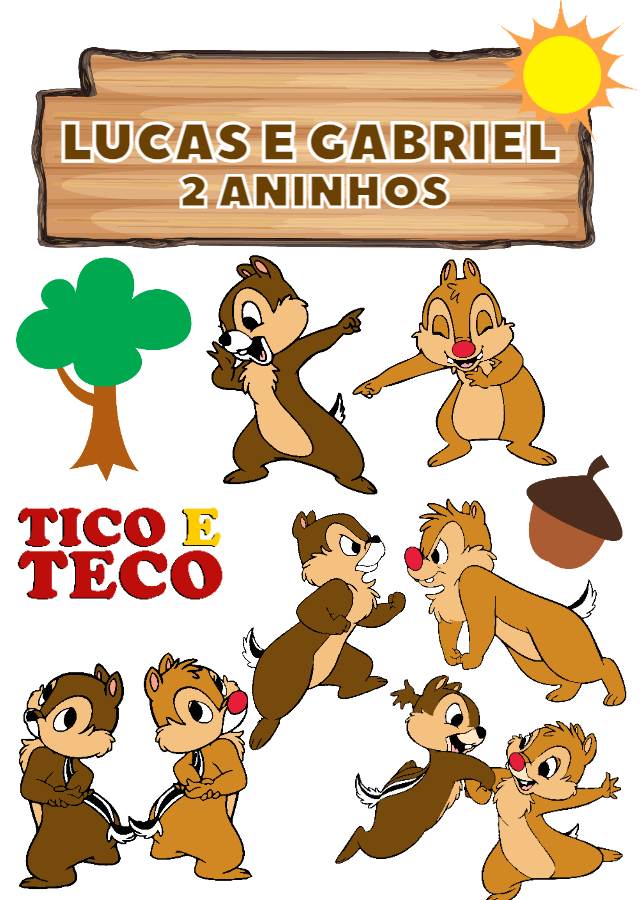 Topo de Bolo Aniversário Tico e Teco para Editar Online