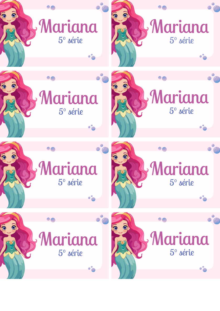 Etiqueta Escolar Sereia para Editar e Imprimir Online