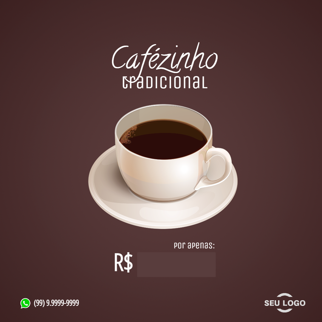 Crie um post profissional para sua cafeteria em minutos. Edite o preço e o texto facilmente para divulgar suas promoções e atrair mais clientes.