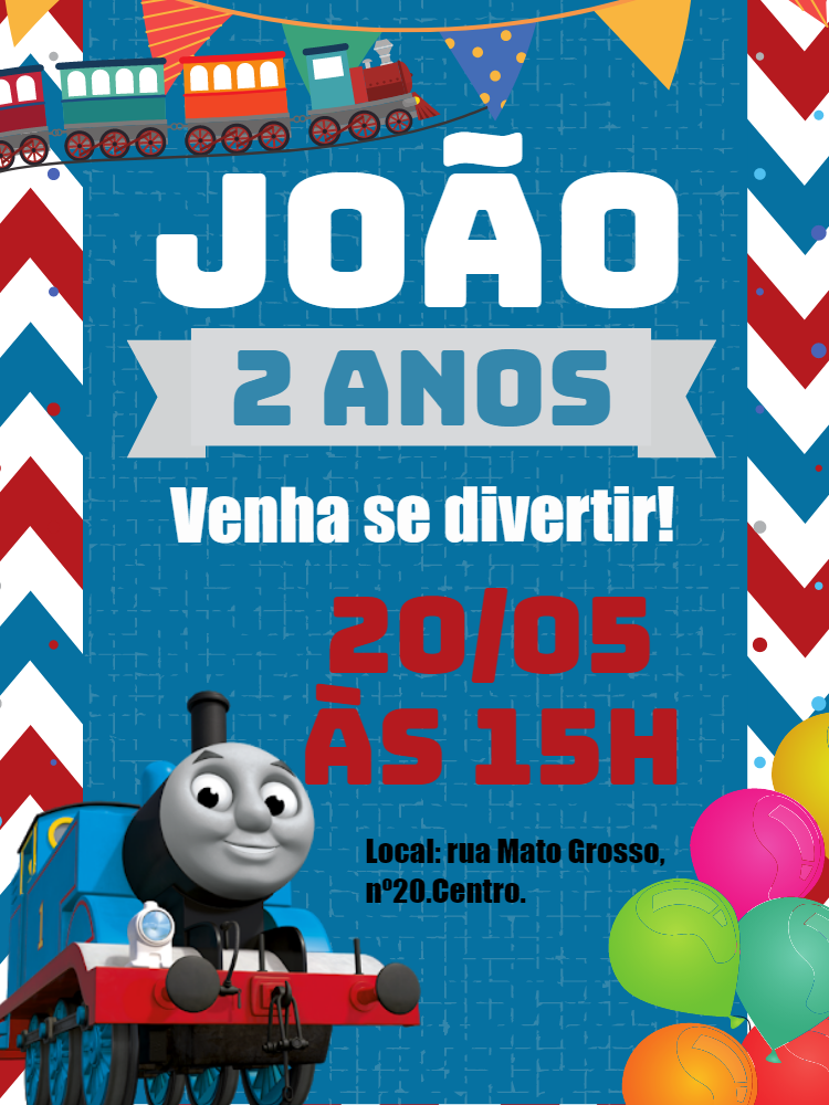Crie um convite de aniversário inesquecível com o tema Trem Thomas! Edite online em minutos e envie para seus convidados pela internet.