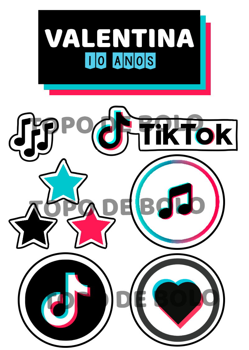 Topo de Bolo Tik Tok para Aniversário Editável Online