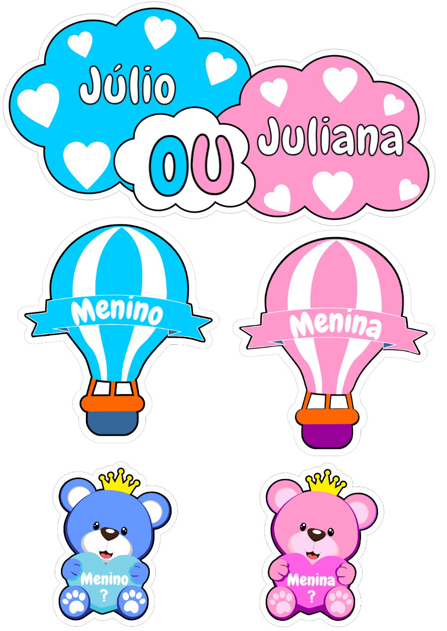 Topo de Bolo Chá de Revelação Ursinhos para Editar Online