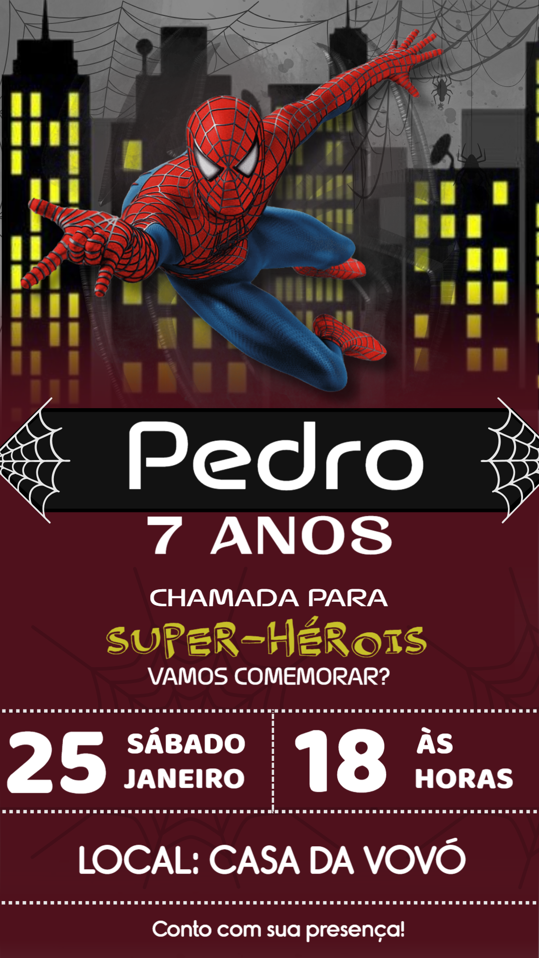 Convite Aniversário Homem-Aranha para Editar Online