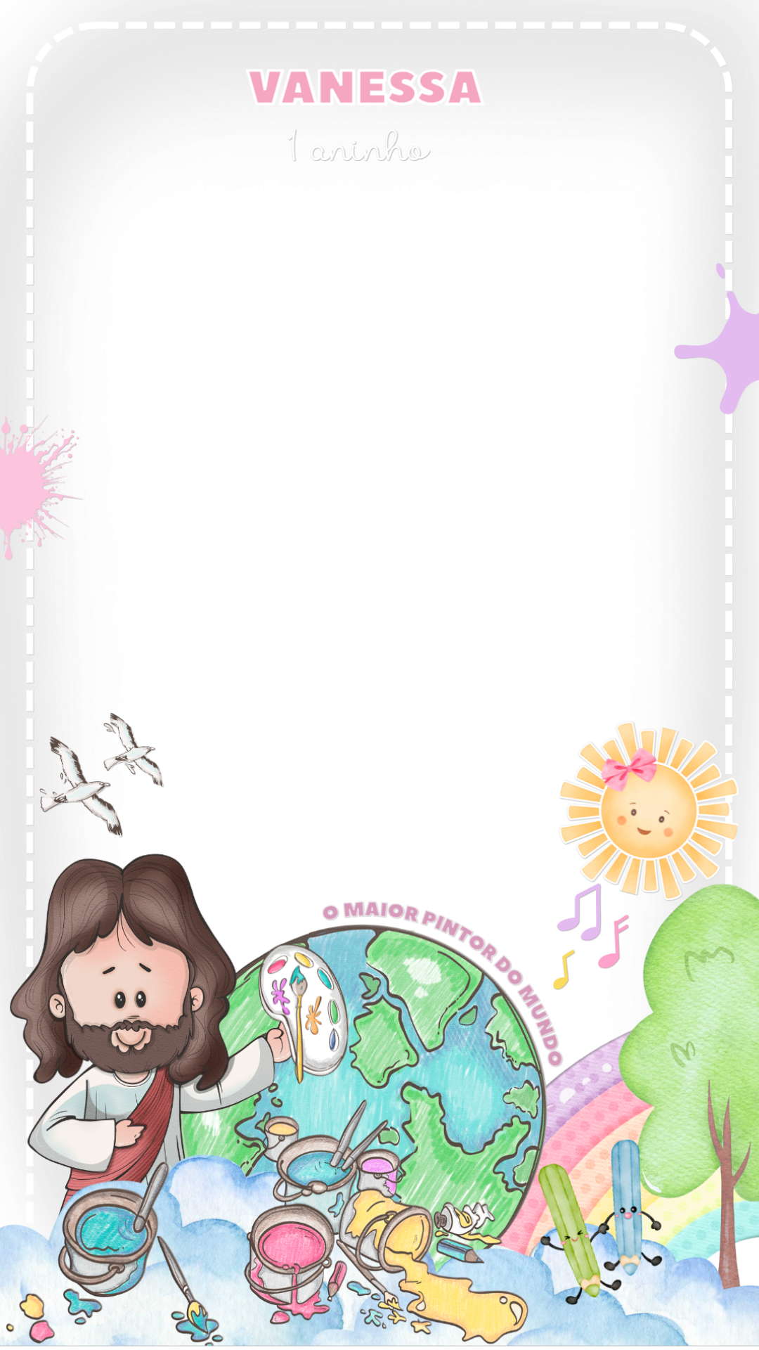 Crie uma linda moldura para stories com o tema O Maior Pintor do Mundo. Ideal para aniversário de menina, personalize online com sua foto!