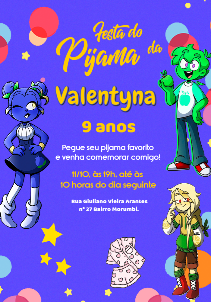 Convite Festa do Pijama Zulmi Mundo Torajo para Editar Online