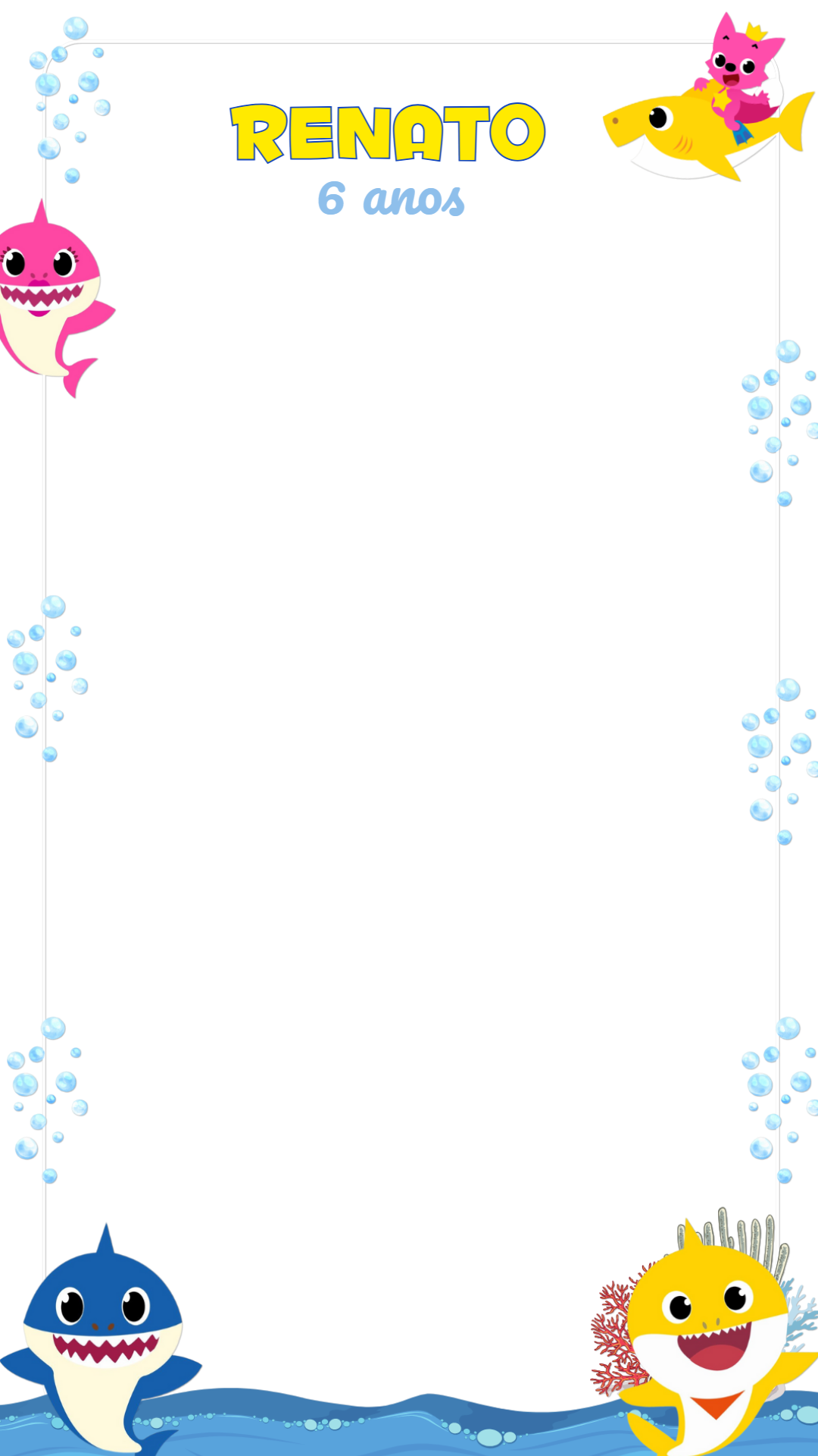 Crie uma moldura personalizada para suas fotos e stories com o tema Baby Shark! Edite online com nome e idade e compartilhe com todos.