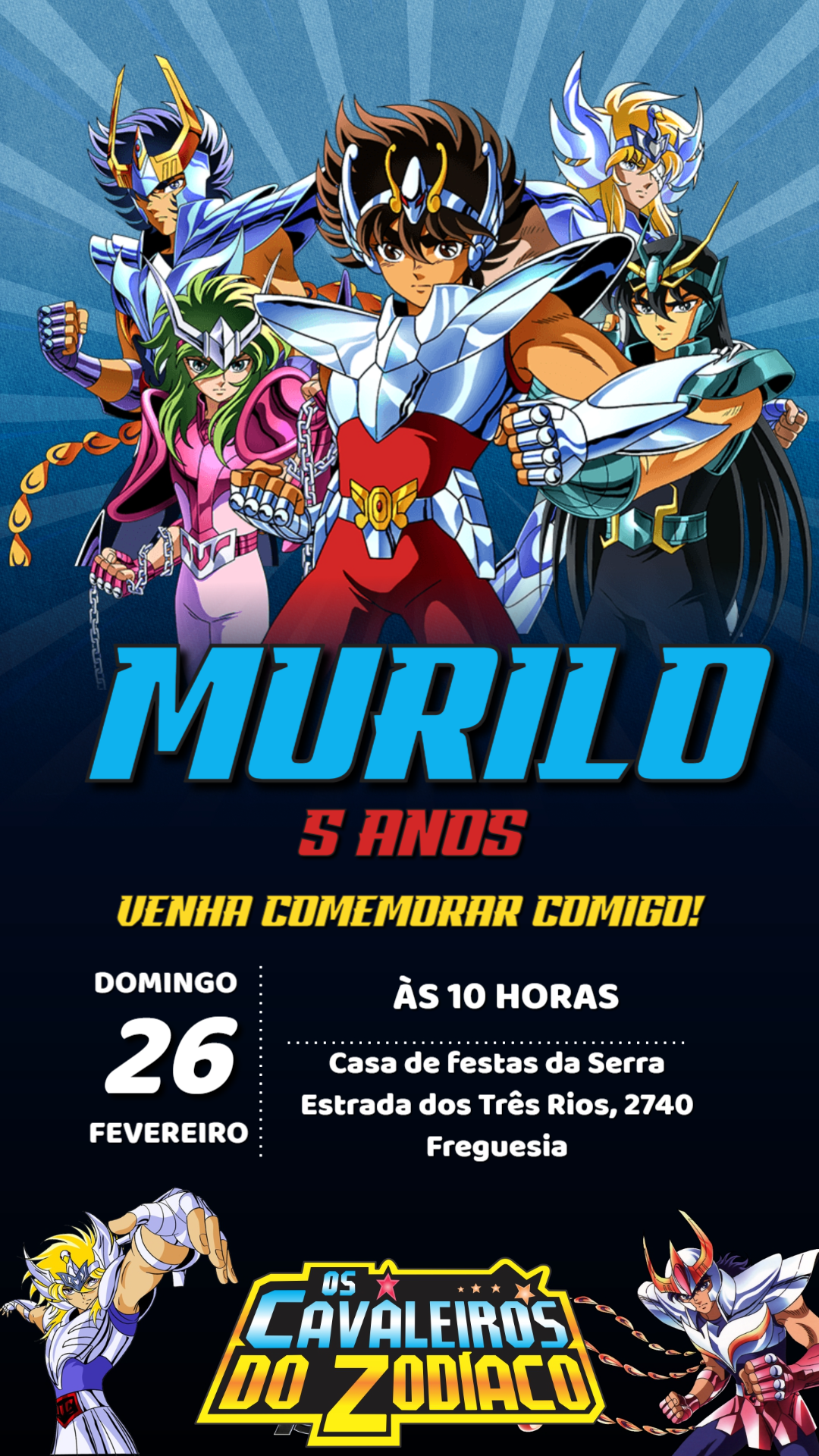 Convite Aniversário Cavaleiros do Zodíaco para Editar Online