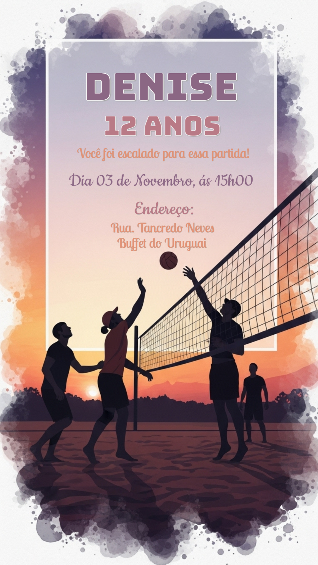 Convite Aniversário Vôlei Pôr do Sol para Editar Online