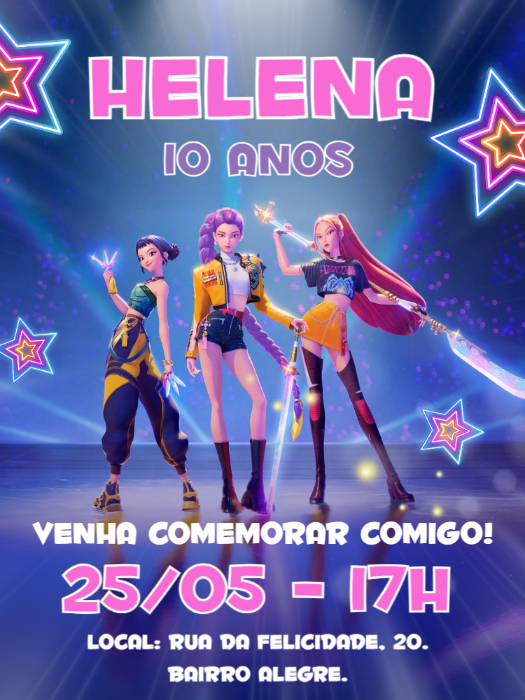 Convite Aniversário K-Pop Guerreiras para Editar Online